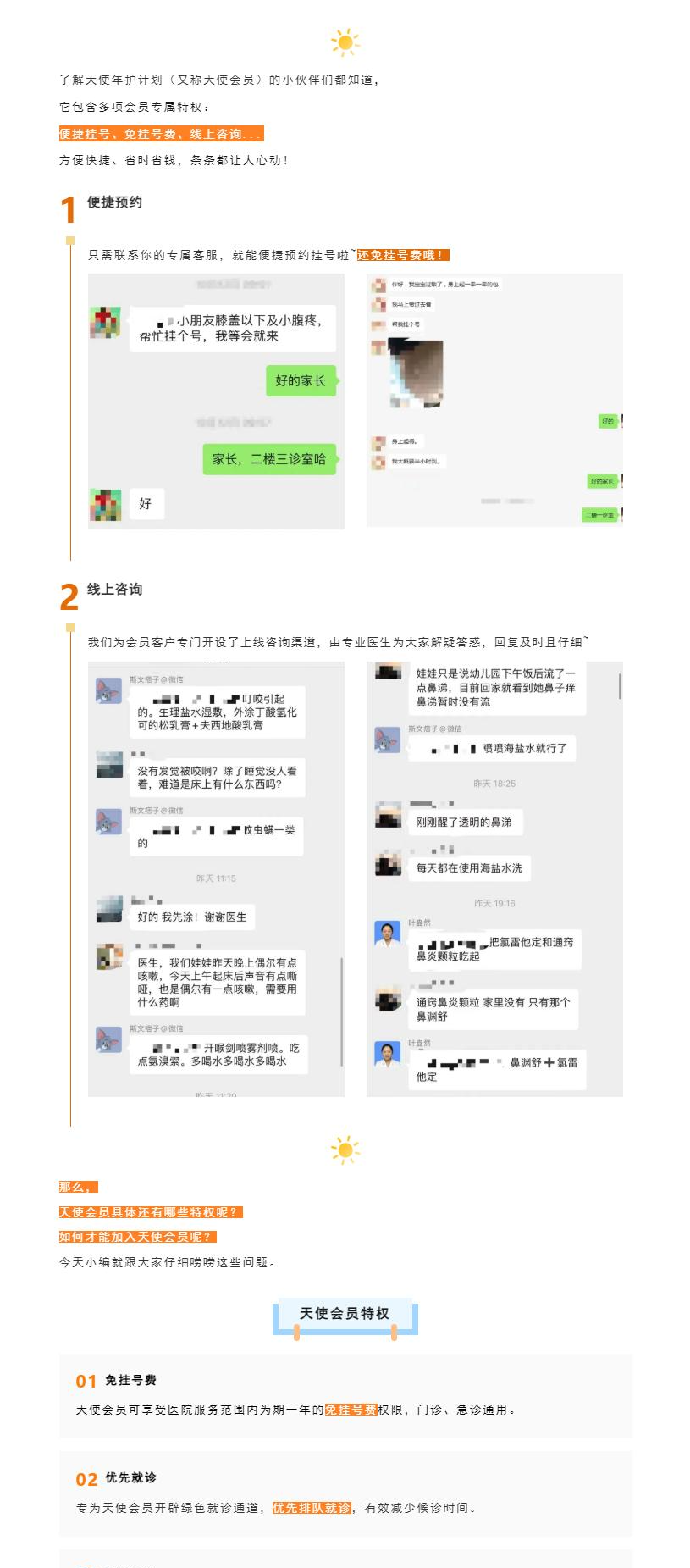 天使会员权益:免挂号费、24小时急诊、便捷挂号...快来加入吧~
